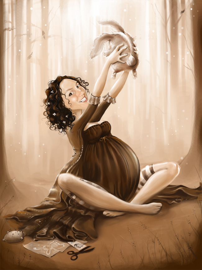 This drawing completes what i call “The forest” series: Its wonderful & Deep in the forest. It takes place in a deep dark magical forest. My muse is Inbal, she’s my wonderful super smart and talented cousin. I made this portrait of her while she was pregnant and completed it after she gave birth to baby Noa. So congratulations to Eric and Inbal Zentner who will no doubt be the most awesome parents. Check out Eric’s cool portfolio: www.ezduzit.ca