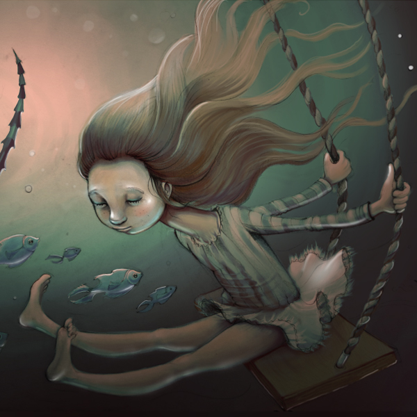 Sometimes I sit and really think hard about what image to depict, I want it to be perfect, and of course it never comes when i try to over push it!.This is what usually happens – nothing, Letting go, and just doodling works for me. So as most drawing of mine…it starts out with not really knowing where it’ll go. The direction and “story” works it self out. This is what happened here. After completing the sketch I started looking at underwater photography examples to get the lighting mood, which was the main challenge of this drawing.